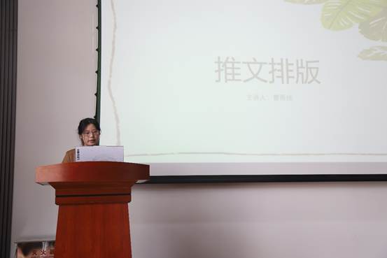 学院信息宣传专干赵赫老师上台发言。她围绕宣传工作的重要意义、职责使命与工作要求展开分享,鼓励全体宣传干事坚守初心、认真履职,以敏锐的视角、扎实的笔触记录学院发展点滴,用优质内容展现色情网站